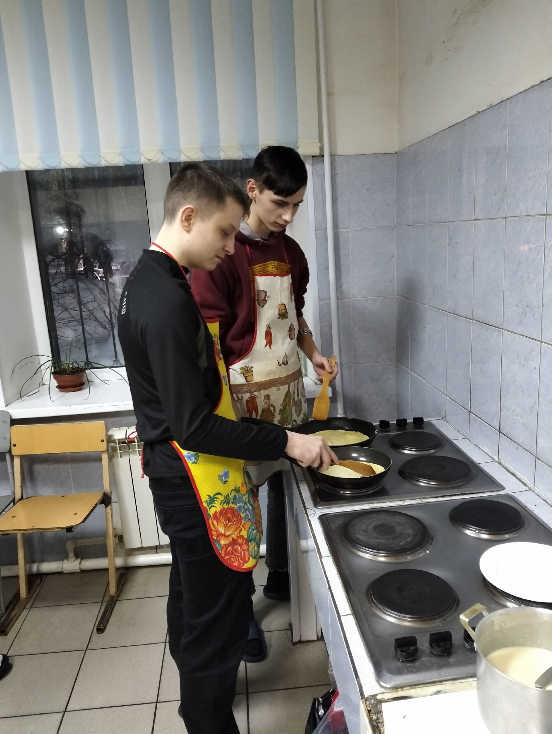 Блины – это не только угощение, но и ритуал! Всю Масленичную неделю ребята, проживающие в общежитии Ивановского железнодорожного колледжа, под руководством воспитателя Додоновой М.И. пекли блины и угощали друг друга. Рецепты у каждой семьи свои: тонкие, кружевные на молоке, на кефире, пышные дрожжевые и др. К блинам варенье, сметана, сгущенка. Ребята показали себя дружными, сплоченными. Молодцы!
