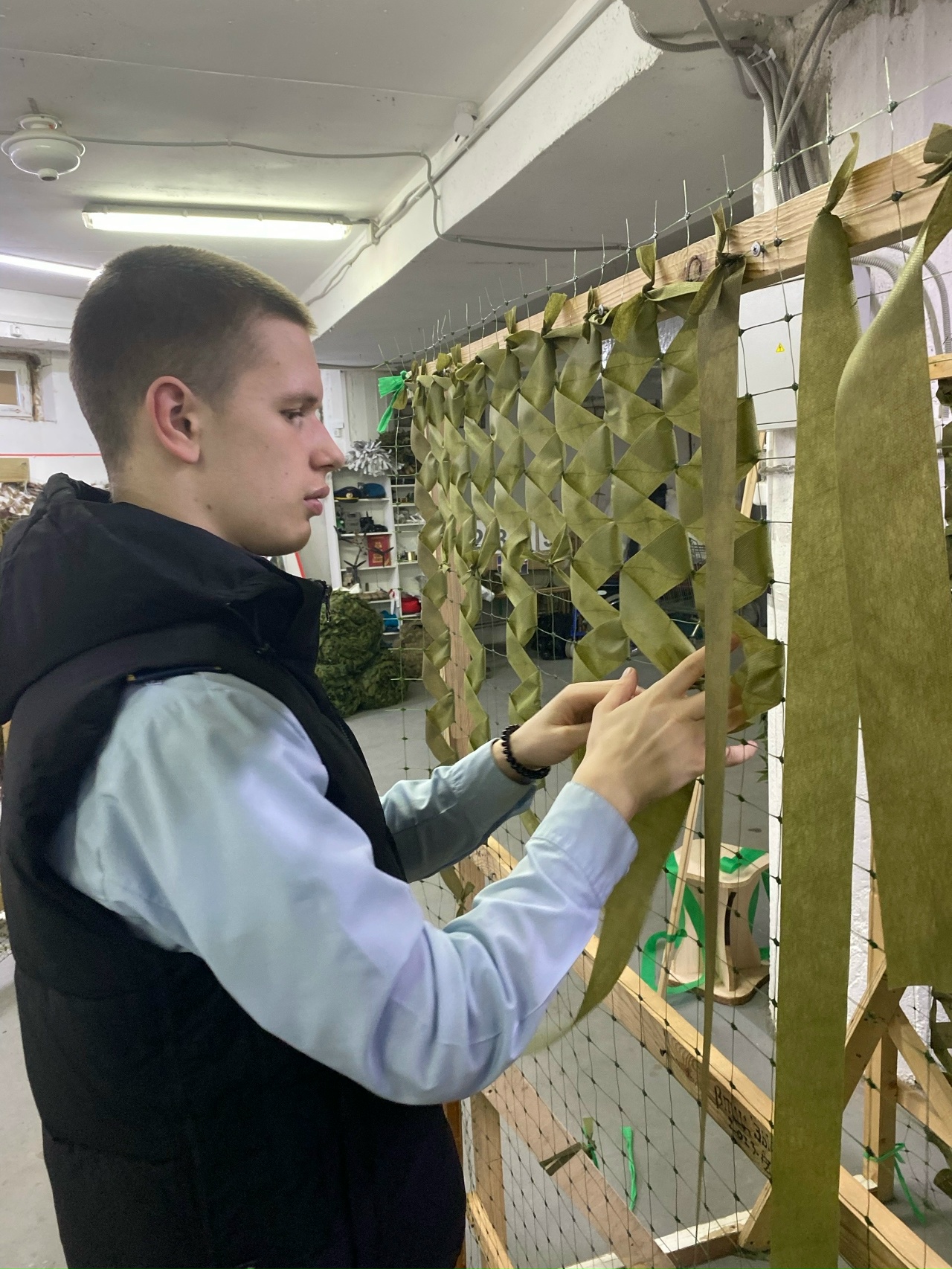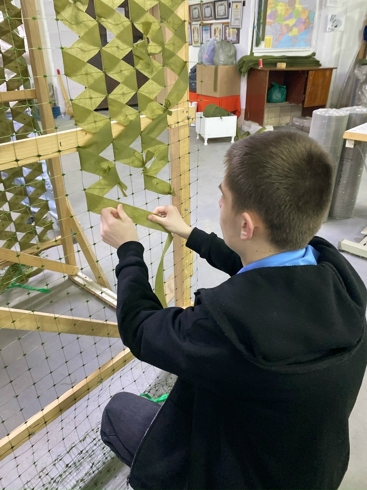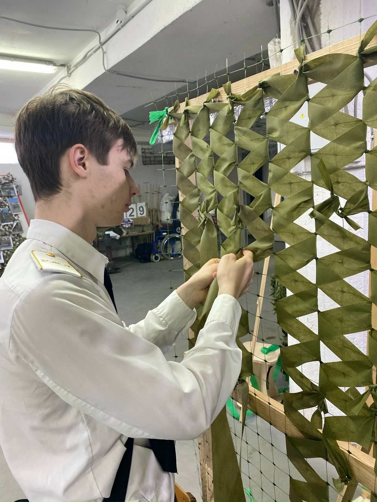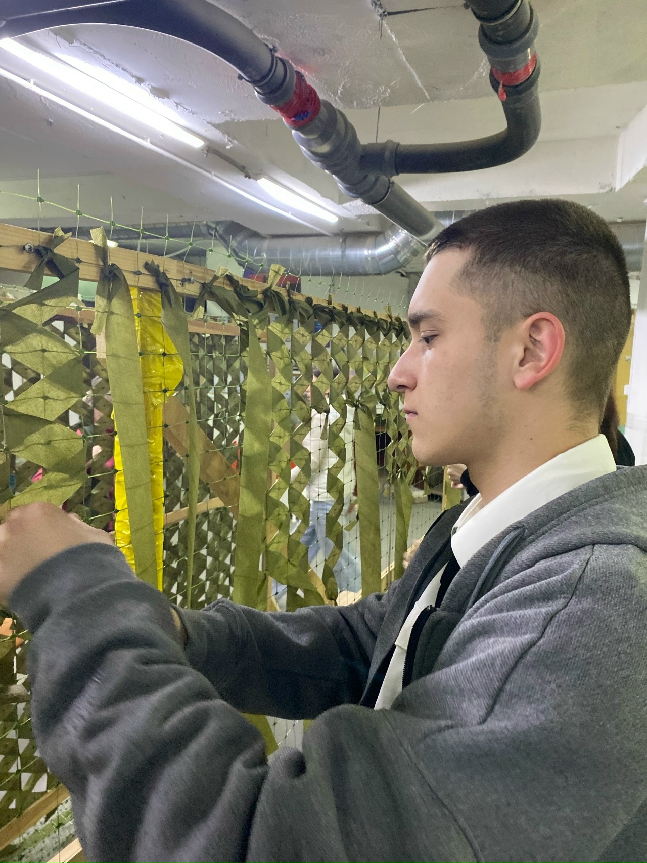 16 апреля 2026 года студенты группы 26/27 Александровский Дмитрий, Джамалов Руслан, Дук Владислав, Люсов Никита, Павлунин Владимир, Ромыслов Кирилл, Сенников Владислав, Хворов Сергей и Шуянов Егор посетили Волонтёрский центр и помогли в плетении маскировочных сетей для бойцов, находящихся в зоне СВО.